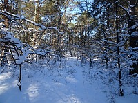 Eerst een stukje door Garderen en het valt direct op dat hier veel meer sneeuw is gevallen dan in het westen van het land. En hoewel er natuurlijk op de wegen wel auto's hebben gereden is de sneeuw nog niet kapot gereden, dus alles ziet er nog mooi wit uit en de straten en stoepen zijn goed begaanbaar. Maar erg veel straten en stoepen hoef ik niet te nemen, want de route gaat al gauw het Speulder en Sprielderbos in.