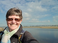 En dat was het ook! Ik had schitterend weer, eerst zon door schapenwolkjes die voor prachtige tegenlichtplaatjes zorgden en later volop zon. Toen ik langs de Slikken van Flakkee liep, kwamen daar mensen vandaan gewandeld en toe ik daar naar vroeg bleek dat je een heel rondje door de Slikken kunt lopen. Dat heb ik spontaan ingelast en tjonge, jonge wat een mooi stukje was dat. Inclusief een kort heen en weertje naar een uitkijkhut was het precies 3,5 km.
