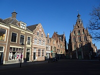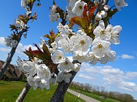Verder door leuke straatjes, waarvan er eentje zo smal is dat ik er al voorbij ben dat ik het in de gaten heb! Maar verder wandel ik zonder problemen het centrum uit en ben ik buiten. Ik kom langs een paar prachtige bloesembomen (ja, deze staan toch al in bloei, waarschijnlijk omdat ze zo beschut staan) en word door Park De Plantage geleid, waar een ooievaar hoog in het nest zit. Daarna kom ik op de dijk langs de Lek te lopen en hoewel de routebeschrijving zegt dat je hier ook een stukje door de uiterwaarden kan, blijf ik lekker op het asfalt.
