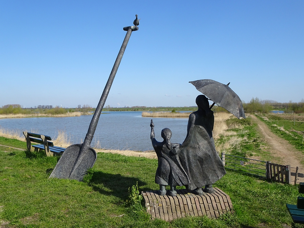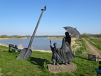 Dan ga ik Culemborg weer binnen en over het laatste stukje kan ik kort zijn: allemaal nieuwbouwwijken, ik vond er niks aan. Erg jammer van zo'n leuke route, want zo'n laatste stukje blijft wel in je geheugen hangen natuurlijk. Maar goed, ik worstel me er natuurlijk toch manmoedig doorheen en moet wel lachen als ik bij het station aangekomen daar een beeldje zie van twee juichende meisjes. Zo voel ik me ook, blij dat ik er ben! En niet alleen vanwege dat saaie stukje, maar m'n been doet ook weer behoorlijk pijn. Maar ik heb een erg leuke dag gehad, met prachtig mooi weer. En als ik deze route nog eens ga lopen, dan doe ik hem gewoon andersom, eerst die saaie nieuwbouwwijken en dan op het eind het mooie centrum van Culemborg, lijkt me veel beterder!