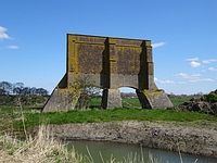 Aan het eind van het pad door de uiterwaarden loop ik recht op de kerk van Everdingen af en daar kan ik bij een landwinkel een koffie-to-go met een croissantje erbij kopen. Bij gebrek aan een bankje geniet ik daarvan op een wat verhoogd stoeprandje, ach ja, een mens moet wàt, hè! Ik ga Everdingen weer uit en kom een eindje verder bij Fort Everdingen. Hier gaat de route dwars doorheen en ik raak voor de eerste keer het spoor een beetje bijster. Paar extra metertjes door het fort dus.