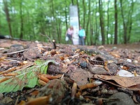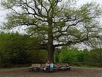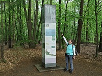 Weer terug op de route gingen we al snel de Amerongse Bossen in en daar zijn we niet snel meer uitgekomen. Buiten dat het een bos was, was het ook een stiltegebied, nou dat leverde een leuk fotootje op, maar iedereen die Wilma en mij kent weet wel dat we niet echt stil zijn geweest De Amerongse Berg zat al vrij snel in de route en na een lange gestadige klim kwamen we boven. Daar stond een grote zuil met Op de top erop.