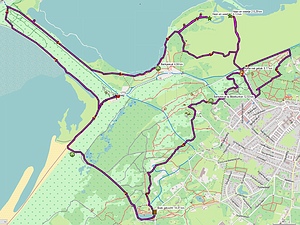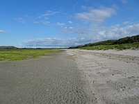 Maar goed, het is ook weer niet zo'n lange route, op papier ca. 15 km en je kan een paar heen en weertje naar uitkijkpunten inlassen. Van de drie die er op de kaart staan heb ik er twee gelopen, beide op het Groene Strand. Een heen en weertje van drie kilometer heb ik laten schieten, dat werd me teveel van het goede, zeker omdat dat heen en weer over een graspad gaat en dat vrij vroeg in de route, het gras was nog veel te nat naar m'n zin!