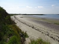 Vanaf hier keer ik dus om en loop dezelfde weg terug naar het sluizencomplex, maar van daar ga ik nu niet via het strand maar aan de Oosterscheldekant van het eiland. Eerst een stuk (heel warme) asfaltweg, tot ik bij een tunneltje kom waarvan ik weet dat er erg mooie muurschilderingen zijn. Die ben ik dus even gaan bekijken en daarna het Natuurgebied Neeltje Jans in. Een zanderig duinpaadje en via een paar stapstenen een stroompje oversteken, weer heel iets anders dan daarnet op de kering!