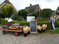 Maar toen eindelijk was ik het Loetbos uit en werd getrakteerd op een heerlijk polderweggetje richting Bergambacht. Dat mocht ik een paar kilometer gaan volgen en ik hoef jullie waarschijnlijk niet te vertellen dat dit weer echt spekkie voor m'n bekkie was. Ik was het Loetbos alweer snel vergeten en liep te genieten van uitzichten over weilanden, leuk boerenhuisjes, verkoopkraampjes en water, heel veel water!