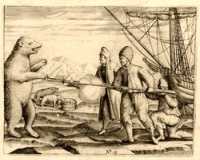 Overwintering In 1700 vertrokken nogal laat in het jaar drie Nederlandse schepen naar Archangel. Na ruim twee weken waren "de Hoogepriester Aaron", "de jufrouw Maria" en "de Jonge Arend" al op de plaats van bestemming, maar toen het laatste konvooi van dat jaar op 13 oktober uit Archangel vertrok, waren de drie schepen nog niet ingeladen. Besloten werd dan maar zonder konvooi terug te varen. "De Hoogepriester Aaron" kwam in november behouden op Texel aan. "De juffrouw Maria" verongelukte bij Trondheim. Lammert Pietersz Gewelt was de schipper van het derde schip, "de Jonge Arend". Door een storm raakte het schip uit koers, en het strandde op 3 november op Bereneiland, tussen Noordkaap en Spitsbergen. Er zat niets anders op dan te overwinteren in de bittere poolkou. Slechts vier bemanningsleden overleefden dit avontuur, waaronder schipper Gewelt. Met een Groenlandvaarder reisden ze Amsterdam. Lammert Gewelt keerde nog tot drie maal toe terug op Bereneiland, omdat hij de lading veilig wilde stellen. Uiteindelijk slaagde hij daar in 1703 in. |