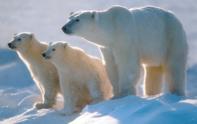 | IJsberen zijn de grootste roofdieren op aarde, al komen sommige bruine beren bijna tot hetzelfde maximumgewicht. Ze zijn erg goed aangepast aan de extreme kou van de noordpool. Hun vacht en speklaag zorgt voor isolatie. Door hun behaarde voetzolen glijden ze niet uit op het ijs. IJsberen kunnen uitstekend zwemmen en hebben geen last van het ijskoude water. | ![]() |