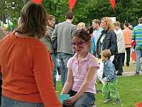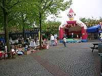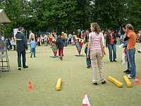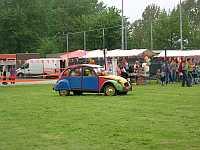 Na de tweede rust (weer in "De Afrit dus) komen we langs een sportpark, waar diverse activiteiten worden georganiseerd en omdat het vandaag toch maar een 25 is, gaan we even kijken. Leuk hoor, beschilderde gezichten, kinderen die enorme frietjes in een grote bak moeten doen en een auto vol ballonnen!