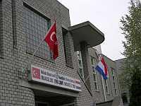 Op weg naar het oude centrum van Maasluis komen we langs een moskee, die ook dapper meedoet aan Koninginnedag. En zo hoort het ook natuurlijk! |