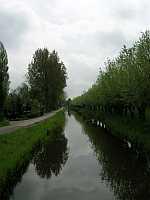Daarna weer een heel stuk over een leuk smal weggetje en een fietspad heerlijk door de weilanden. Uitzicht op kerken en molens, jammer nog steeds van die zon! |