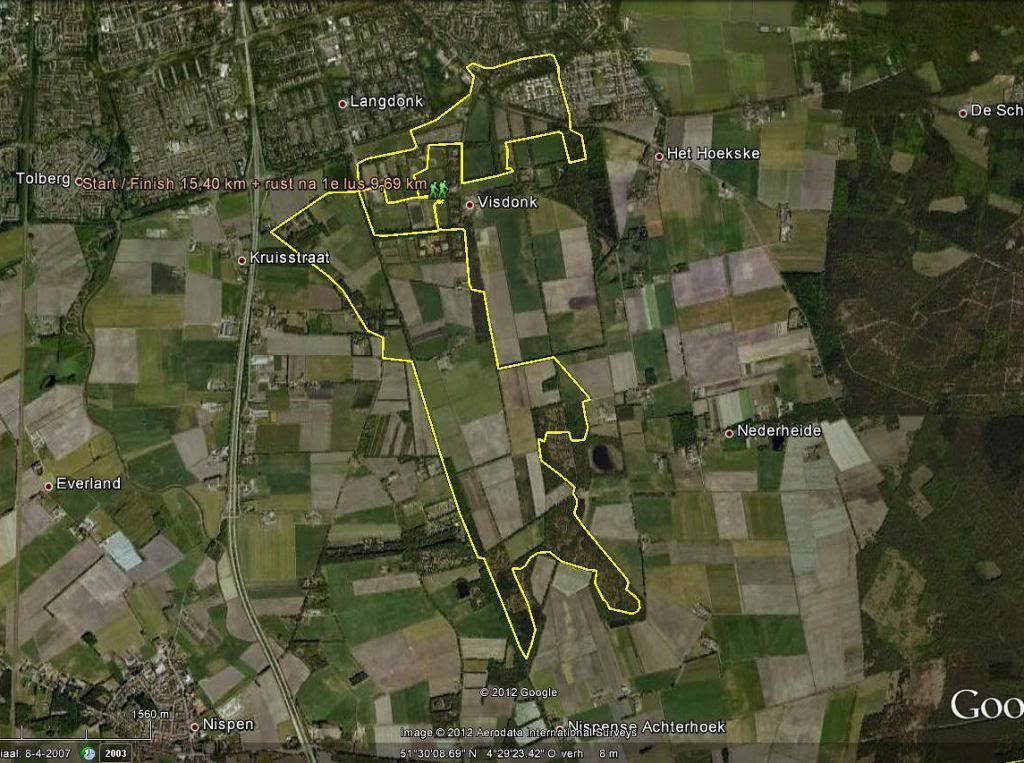 Dat is inmiddels traditie, deze keer reis ik voor de 4e keer af naar Roosendaal. Het regent als ik thuis aan de koffie zit, maar buienradar belooft dat het later droog zal worden. Als ik net in de auto zit, zie ik op het woonerf enorme plassen staan en opeens herinner ik me hoe modderig de lus van de 10 km verleden jaar was. Ik maak rechtsomkeert, sprint de bijkeukenschuur weer in en verwissel gauw m'n Saucony's voor m'n hoge Meindl's. Ik besluit wel om dan vandaag maximaal 15 km te gaan lopen, op die Meindl's loop ik nou niet echt lekker