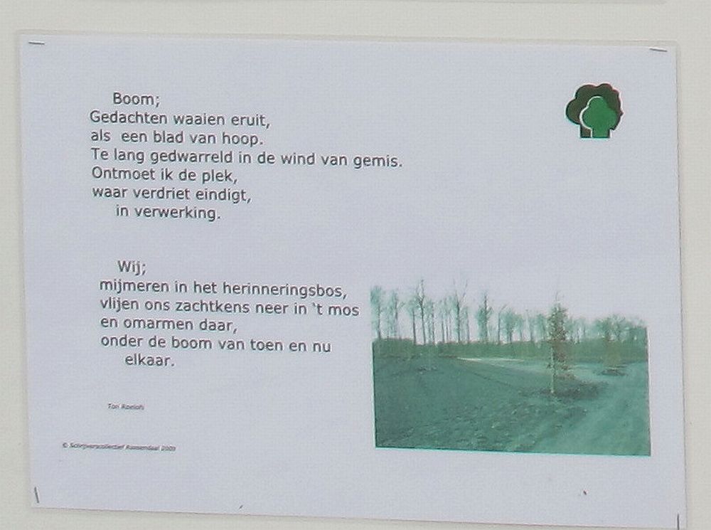 De route van de 5 km is veel beter te doen. Heerlijk verharde en vooral droge wegen, vooral in het begin. Ik kom Chiel tegen, die is bijna klaar met de lus van de 8 km en gaat daarna ook de 5 nog doen. Natuurlijk wensen we elkaar een Gelukkig Nieuwjaar! Er komt toch nog een stukje bos met de nodige modderpaden en dan gaan we vlak voor de finish een stukje door een "Gedenkbos".