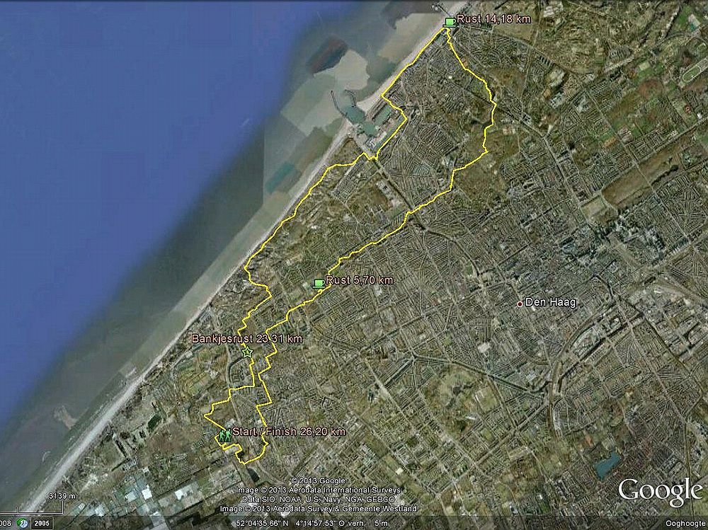 Het Scheveningse Bos, waarnaar de tocht is genoemd, werd door de 25 km amper aangedaan, later hoorde ik dat de 30 km lopers nog wel een heel stuk door het bos gingen. Overigens vond iedereen die ik sprak de tocht juist erg mooi, dus laten we het er maar op houden dat ik een afwijkende smaak heb!