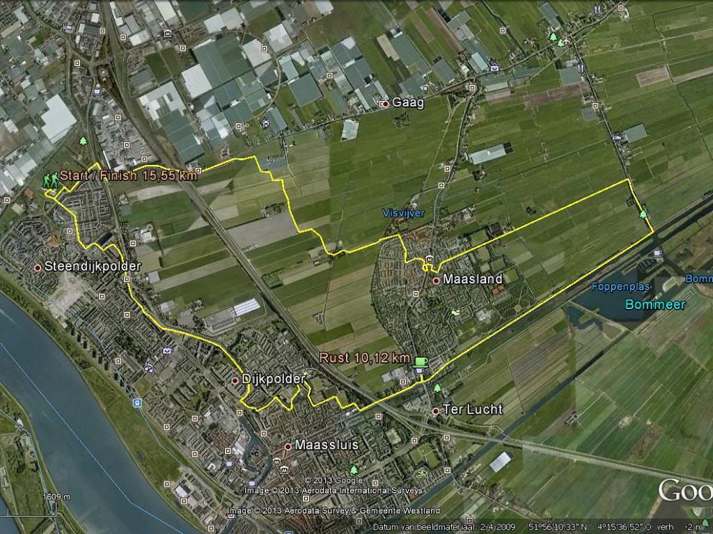 Het blijkt dat vandaag route nr. 12 op het programma staat, over verschillende kerkepaadjes rondom Maasland. Fijn, ik ben dol op kerkepaadjes, omdat ze altijd door boerenland gaan! En daarin word ik niet teleurgesteld, we gaan direct na de start de polders in. Eerst nog een stuk over een asfaltweg, maar al gauw moeten we rechtsaf het weiland in om het eerste pad, het Dijkpolderpad te gaan volgen.