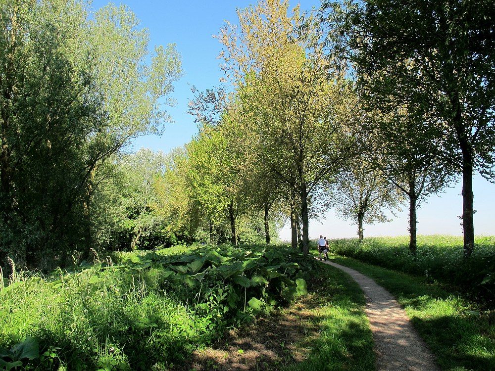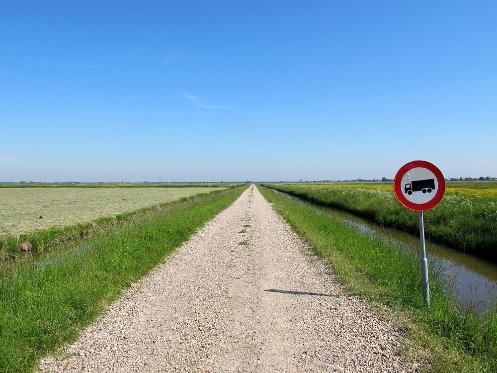 Maar eerst maar weer een paar kilometertjes maken! Het gaat nu dwars door de weilanden richting Strijen en de wegen zijn hier zo mogelijk nog langer, rechter en kaler dan daarnet. Ik ben echt blij dat er wat wind staat, want schaduw is op dit stuk ver te zoeken. En het is nog hartstikke vroeg, ik ben bang dat het vanmiddag erg warm gaat worden.