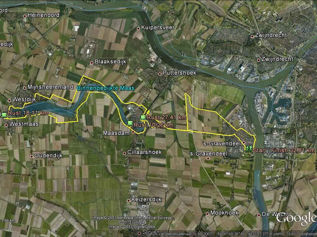 Na de rust gaat het nog een stukje langs de Binnenmaas en dan opeens ben ik in Mijnsheerenland, bij de start van de Biwanto. Volgens de routebeschrijving moet de volgende rust (ja, we hebben drie rusten vandaag!) op 24,3 km zitten, maar omdat ik vanaf de Biwanto-start de afstand een beetje kan inschatten, lijkt me dat aan de optimistische kant.