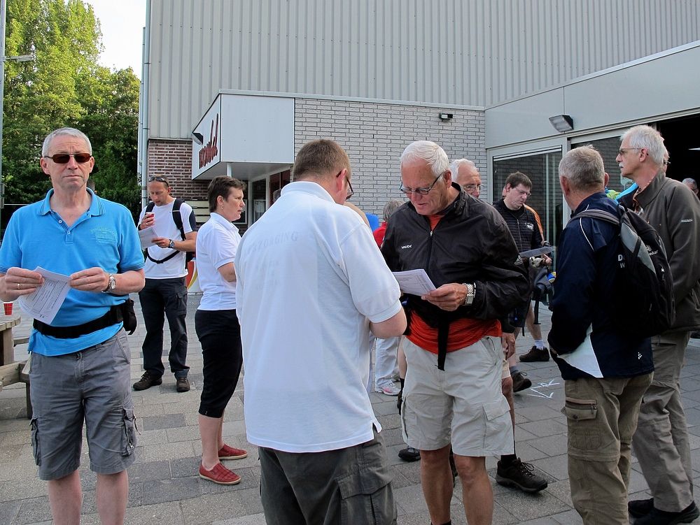 Ook ga ik in Ridderkerk Suze nog even oppikken en mooi op tijd arriveren we bij de kantine van korfbalvereniging WION in Rotterdam Ommoord. Twee jaar geleden brandde deze kantine af en nu is hij prachtig herbouwd. Grote ruimte en voor de RWV ideaal als startlocatie! Ik lever de wandelboekplaatjes af en maak met heel veel bekenden een praatje. Het is prachtig mooi weer, dus wachten op de start kan zowel binnen als buiten, kortom, ik vermaak me opperbest!