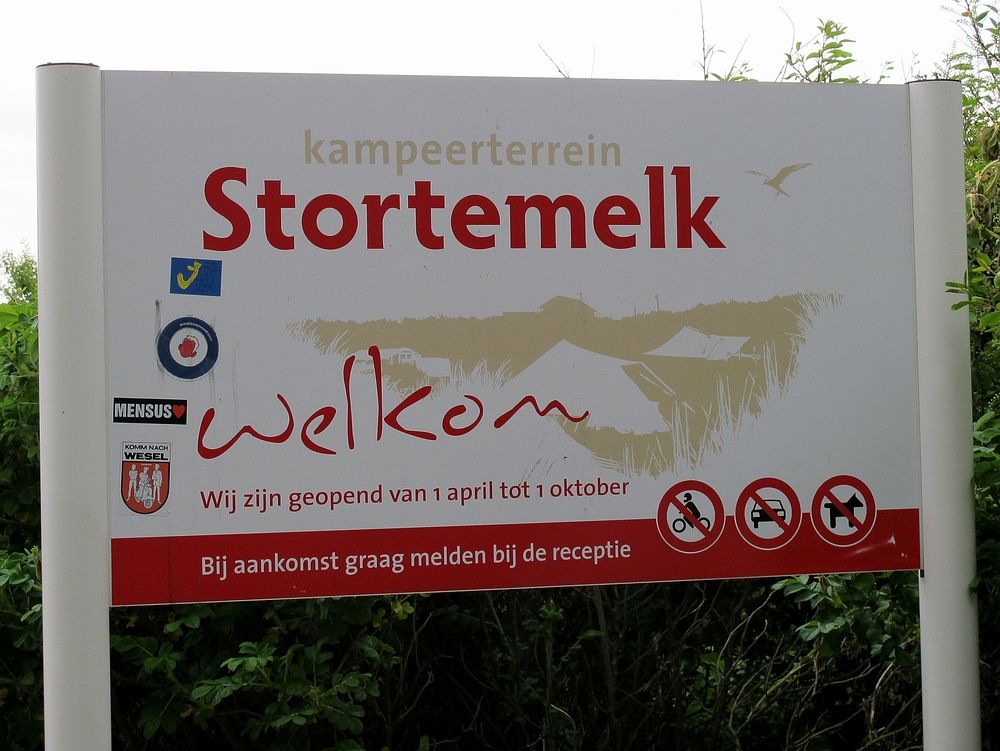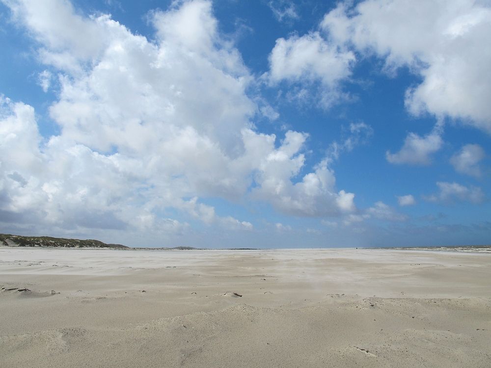 Als ik op de Fortweg loop, zie ik boven zee weer van die donkere wolken hangen, net als vanmorgen. Gelukkig houden ze nu hun inhoud bij zich. Het stukje strand tegen de wind is weer heftig en ik word nog een beetje meer gezandstraald. Maar inmiddels zijn wel m'n voeten droog gewaaid! En dan voor de allerlaatste keer de duinenrij over, pfffffff wat een klim. Maar als je dan eenmaal boven bent zie je ook direct de camping al liggen.