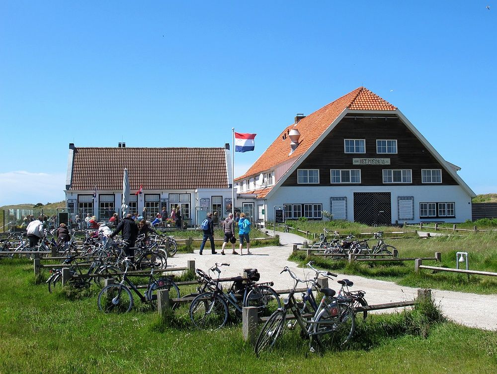 Na een cola in het café en een praatje met een paar medewandelaars, vang ik de tocht naar he hotel weer aan. Lekker in het bos, waar de wind een stuk minder is dan aan de buitenkanten van het eiland. In de Dorpsstraat neem ik een patatje, zin om vanavond uitgebreid te eten heb ik echt niet meer! En ik heb fijn een ligbad in het hotel, lekker de moeheid uit m'n spieren laten wegglijden!