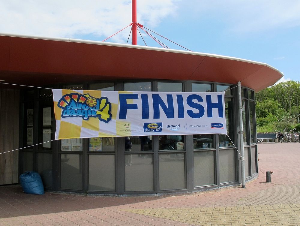 We naderen nu de Vliehors en daarmee de laatste strandovergang: het reddingbootpad. Ik zie de mensen voor me naar de opgang afbuigen en opgelucht worstel ik ook tegen de wind in schuin over het strand. Ik word compleet gezandstraald! Uit tegengestelde richting komen een paar dapperen van de 45 km, die zijn terug van hun lus. Die hebben die enorme bui midden op de Vliehors gehad, ook niet prettig!
