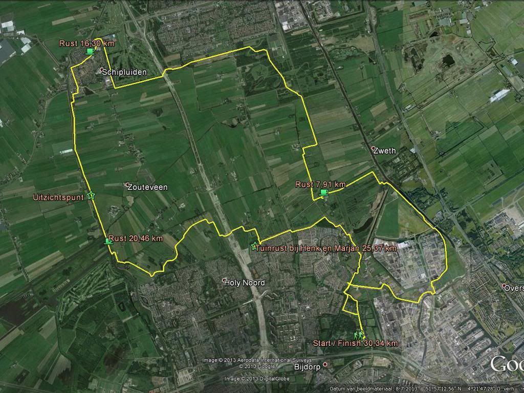 Een prachtige tocht geweest, waarbij helaas het deelnemersaantal wat achter bleef door de onverwachte concurrentie van RS80. Nog even na zitten praten met Martin van de organisatie en de correctie van tweemaal-driemaal links doorgegeven. Buiten nog even een welverdiend kopje koffie genomen en toen weer terug naar huis. Schitterende wandeldag geweest!