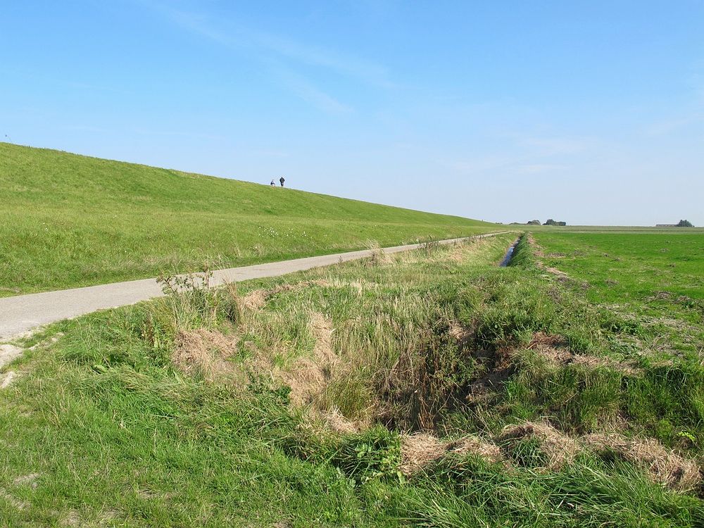 Dan gaan we echt Brouwershaven uit en de weilanden, polders en akkers in. Wat een geweldige omgeving is het hier weer, zeg! Ik lach om een straatnaambord waarop staat: Kijkuitsedijk, nou ik kijk hier inderdaad m'n ogen uit, wat een prachtig landschap! Omdat de route nu niet meer in één rechte lijn loopt, heb ik natuurlijk wel wat meer last van de wind, maar het is minder erg dan ik verwachtte.