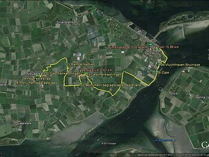 Even verder kom ik aan het eind van etappe 3 en markeer het punt op m'n GPS. Dan verlaat ik Bruinisse weer en kom langs de grote oesterschelp, daar zie ik ook het bootje liggen van m'n eerdergenoemde overtochtje. Ik kom langs een haventje en daarna gaat het dwars door een vakantiepark heen.