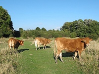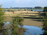 Ik verlaat Nieuwerkerk via een heel stuk door een boomgaard. Best een leuk stuk hoor, maar het gras is kleddernat van de mist en ik krijg na een tijdje doornatte voeten. Lekker als je nog 30 km moet, maar gelukkig ben ik niet blaargevoelig! Ook hier hangt het fruit plukklaar aan de boompjes, mooi gezicht.