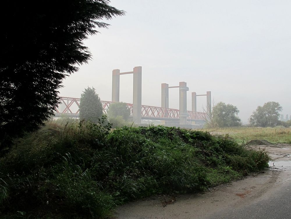 Bij Tussenwater gaan we de metrolijn, die hier bovengronds loopt, volgen. Vlakbij die betonnen kolos waar de rails overheen lopen staan twee grote woonhuizen. Het lijkt haast wel of ze onder de spoorlijn staan! Ik zou daar toch niet graag wonen!