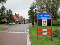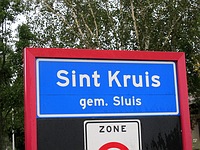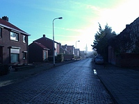 Aan het eind van dit pad steek ik een water over en kom dan via een lange weg het dorpje Sint Laureins binnen. Ik loop namelijk al een hele tijd in België, vlak nadat m'n camera kapot ging, stak ik de grens over. Soms kom ik bordjes tegen van een Smokkelroute die je hier kunt lopen, toch eens wat info van opzoeken.
