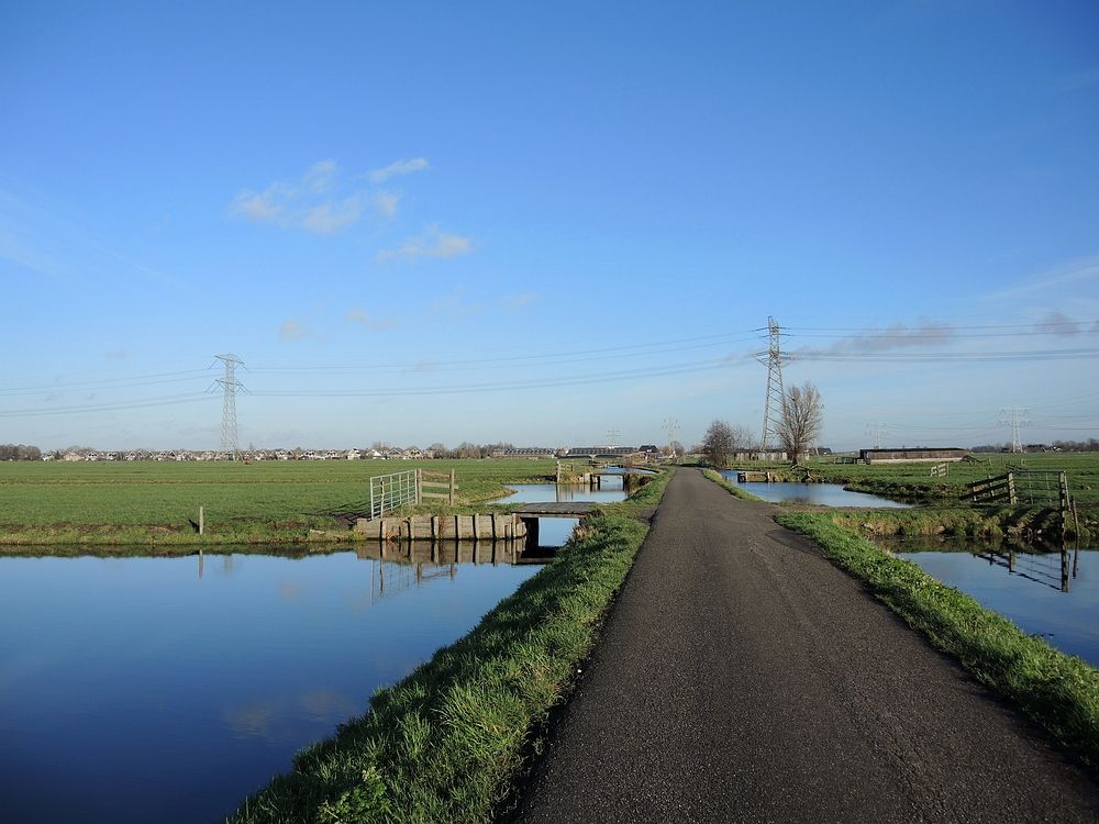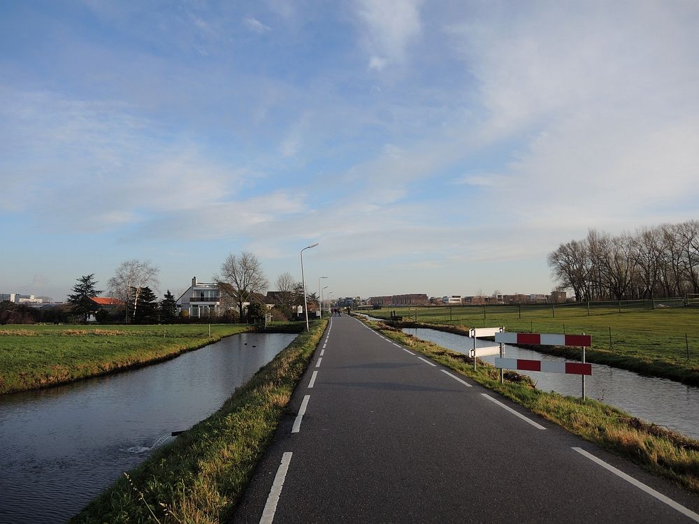 Hij gaat alweer naar beneden voor ik boven ben en zo kan ik zonder oponthoud mijn weg vervolgen. De lucht is inmiddels helemaal opengetrokken en de zon staat nu in een strakblauwe hemel te stralen. Als je niet beter wist, zou je denken dat het lente is! Er komt een stukje langs de Hollandse IJssel, waar grote boten liggen en dan kom ik langzamerhand aan bij de 1e verzorgingspost.