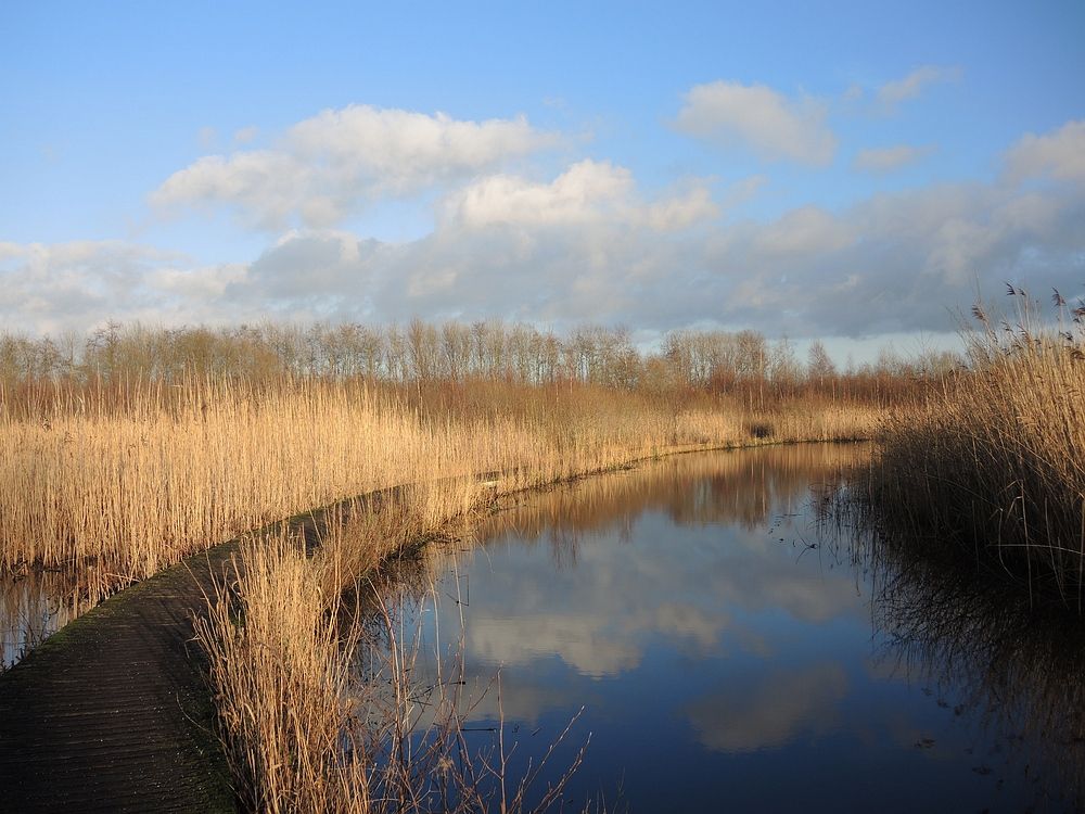 De rust loop ik voorbij, ik heb op de route gezien dat de wagenrust 3 km verderop zit en één verzorgingspost op de 15 km is voor mij ruim voldoende! Naar de wagenrust gaat het opnieuw over de vlondertjes door het Hitland en het is nog net zo mooi en modderig als gisteren. Ik loop maar een beetje voorzichtig, bang om uit te glijden!