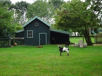 Na Enkhuizen nog een stukje verder naar de finish, waar ik een lekker softijsje heb gedeeld met een brutaal vragend kauwtje. Daarna naar m'n tweede B&B in Onderdijk, Dirosa genaamd. Daar werd ik met een briefje welkom geheten, ik had kamer Bordeaux en had ik gisteren engeltjes, vandaag stond in het teken van koeien! Ook dit was een prima kamer, met een eigen zitje buiten waar je uitzicht had op de paarden van een manege. Jammer dat het na al die weken droogte juist nu regende .
