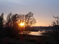 Onderweg had ik de zon op spectaculaire wijze zien opkomen, maar na zijn opkomst werd hij gelijk opgeslokt door een dik wolkendek, waar hij pas met zonsondergang weer onder vandaan kwam. Een grijze tocht dus, door eindeloze polders, met veel inmiddels helemaal kale bomen die prachtig afstaken tegen de hemel. En hoewel het met een vrolijk zonnetje natuurlijk een stuk fleuriger zou zijn geweest, vond ik het vandaag ook heerlijk.