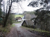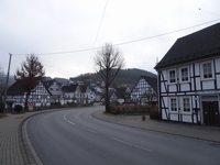 Nadat ik me geïnstalleerd had ben ik een beetje in de buurt rond gaan kijken, ik wandelde naar een kerkje, en zag daar een oerwoud van richtingaanwijzers naar wandelpaden. Tjonge, jonge, wat een boel mogelijkheden heb je hier. Op een bordje zag ik dat je naar de Burg Bilstein kan lopen, ca. 1,5 km. Nou, dat kon ik heen en weer nog net voor het donker halen, dus op naar Bilstein! En het was inderdaad een leuk ommetje, boven langs een heuvel en onderlangs weer terug.