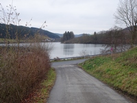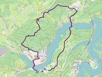 Ik zag overal (genummerde!) bankjes staan en ook was er overal markering zichtbaar, die had ik natuurlijk niet nodig omdat ik op m'n GPS-track liep, maar toch heeft het wel iets geruststellends. Uiteindelijk daalde ik door het bos over een heel steil paadje af naar de Biggesee en stak die over via de Lister stuwdam. Altijd leuk, zo'n stuwdam, ik verwonder me altijd over het enorme niveauverschil van het water aan de ene en aan de andere kant van de dam!