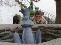 En het stijgen was nog niet gedaan, ik mocht ook nog even de Sonnenberg beklimmen, dwars door het bos met soms eng smalle paadjes over boomwortels en langs steile hellingen. Heb hier echt wel een beetje voorzichtig gedaan, ik wilde niet gaan schuiven! In een soort schuilhutje heb ik nog even een crackertje gegeten en toen op voor de laatste kilometertjes, gelukkig nu weer langzaam dalend tot ik bij de Burg Bilstein uitkwam. Toch maar goed dat ik de eerste dag niet naar boven was gegaan over die trap!