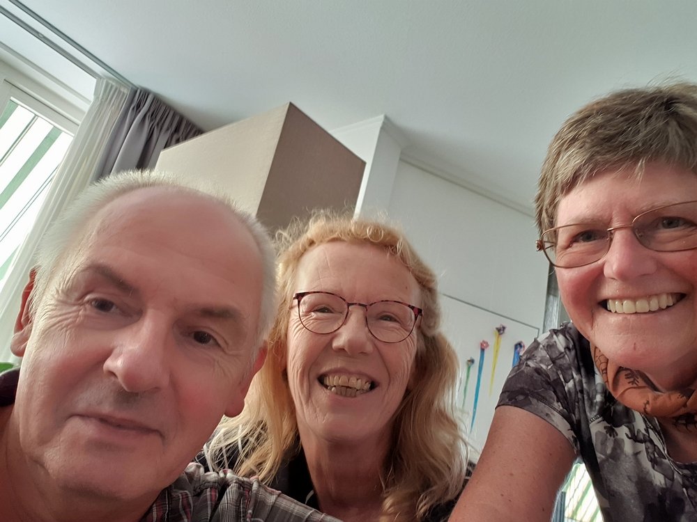 En nu dan de terugweg dwars door Veenendaal heen. Zoals ik al verwacht had is dat nogal saai, gewoon één lange rechte weg van 5 kilometer. Maar goed, je loopt dwars door het dorp (stad?) dus ik bewonder tuintjes, bekijk etalages, omzeil ettelijke wegwerkzaamheden en scoor bij een luxe ijssalon een luxe ijsje met de bijzondere smaken salted caramel en witte chocolade, was hemels! Dan krijg ik een appje van Wilma dat ze thuis zijn en wandel ik op m'n gemakje naar ze toe.