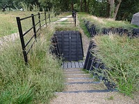 Ik doe een rondje over de punten van het Hoornwerk en spot daar een paar hele grote paddenstoelen, zo, wat een joekels zijn dat! Wat verderop kom ik bij een bunker van de Patherstellung en daar kan je ook binnenin een kijkje nemen, vanuit daar heb je mooi uitzicht over de weilanden. Die weilanden mag ik even later in, want de route neemt hier een stukje van het Jufferpad mee. Nou, dat kan in het kort beschreven worden als héél erg onverhard en héél erg nat. Gelukkig ook wel heel erg mooi.