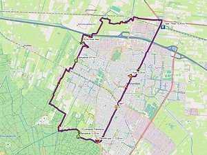 Als ik de route in Basecamp bekijk valt me op dat ik vanaf de finish van etappe 11 in één rechte lijn dwars door Veenendaal terug kan lopen naar de start in de Klomp. In heb het lijntje snel ingetekend en het blijkt 5 km te zijn. Mooi, samen met de 12 km van de etappe heb ik dan toch nog een leuk aantal kilometers voor zo'n verre reis. En helemaal mooi als blijkt dat de route terug pal langs het huis van Wim en Wilma komt! Even heen en weer appen en ja hoor, ze zijn 's middags thuis, dus dat komt prachtig uit, even gezellig bijkletsen!