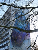 hier enorme kunstwerken op zijkanten van heel hoge en
