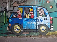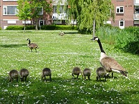 Ook heb ik in de parken waar ik doorheen kwam het nodige jonge grut van eendjes en (Nijl)ganzen gezien en op de foto gezet. En hoewel ze hier wel aan mensen gewend zullen zijn, gingen de moeders toch af en toe beschermend tussen hun jonkies en mij in staan. Best dapper eigenlijk van die kleine beestjes tegenover zo'n groot (ahum) mens! Wat verderop kwam ik door een tunneltje met kindertekeningen, heel erg fleurig en ik vond het jammer dat er zo overheen gekladderd was.