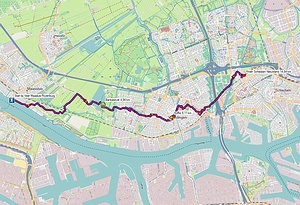 brug Vlaardingen binnen. Hier pikte ik ook de route volgens het